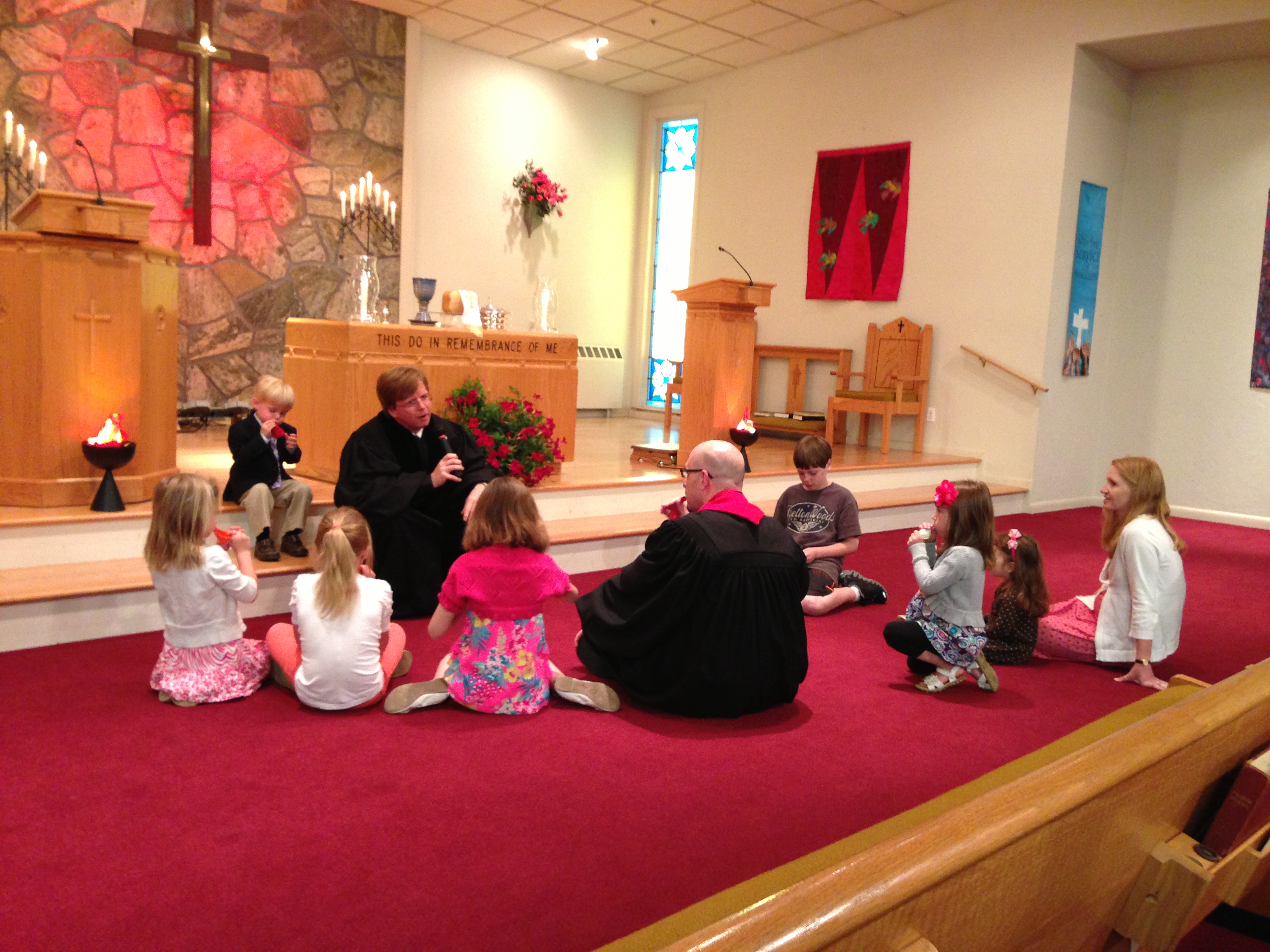 This will generate several minutes of confusion and glee, as the kids run around the congregation – including (hopefully) among the choir members, receiving their gifts of “Holy Spirit Balloons” from the congregation.